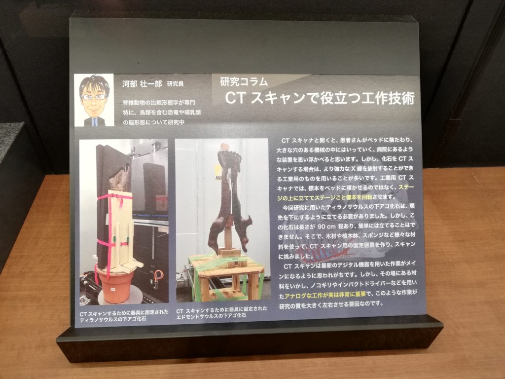 しかも、福井県立恐竜博物館の研究員の方の最新の研究内容やコラムまで展示されていて、研究の苦労が垣間見えましたね。