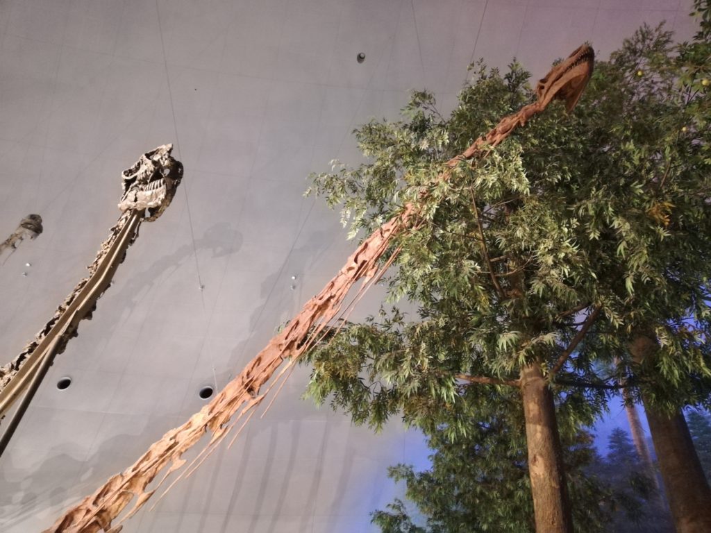 さて、カマラサウルスの産状化石の階段を上ると、本館1Fの展示「恐竜の世界ゾーン」に入ります。福井県立恐竜博物館のメイン展示はここからです。