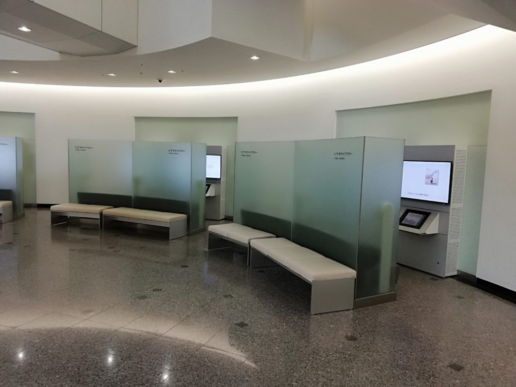 ホワイエから本館方面に進み右に曲がると、すぐの所にあります。入り口ゲートからですと、右手の通路の途中です。