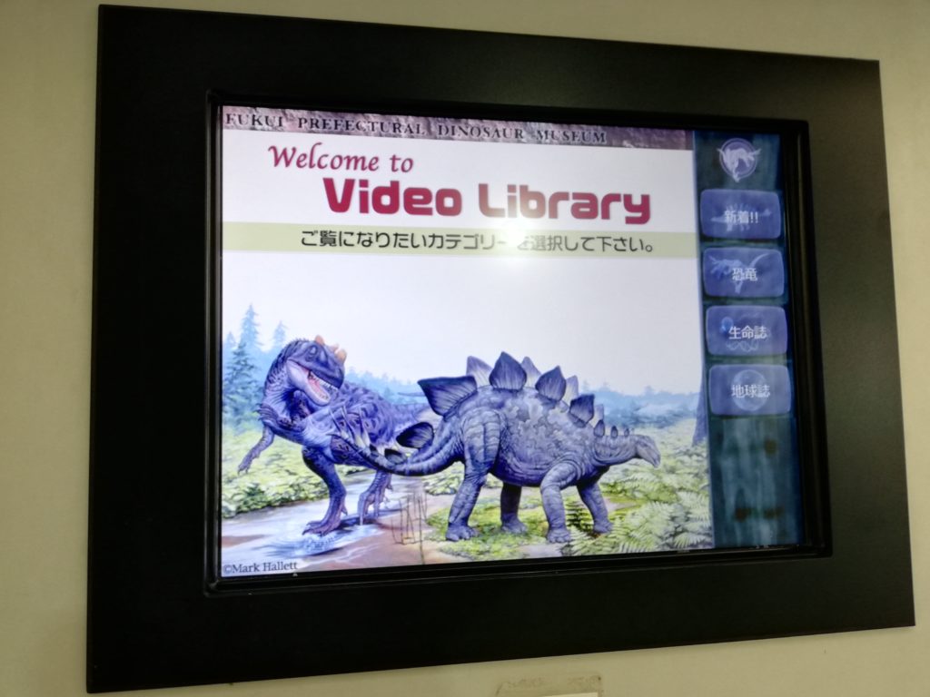 博物館が独自に製作したオリジナルの映像を楽しむことができるブースです。恐竜、古生物、地球の歴史等、様々な映像を座って見ることができますので、歩き疲れた時にもおすすめです。